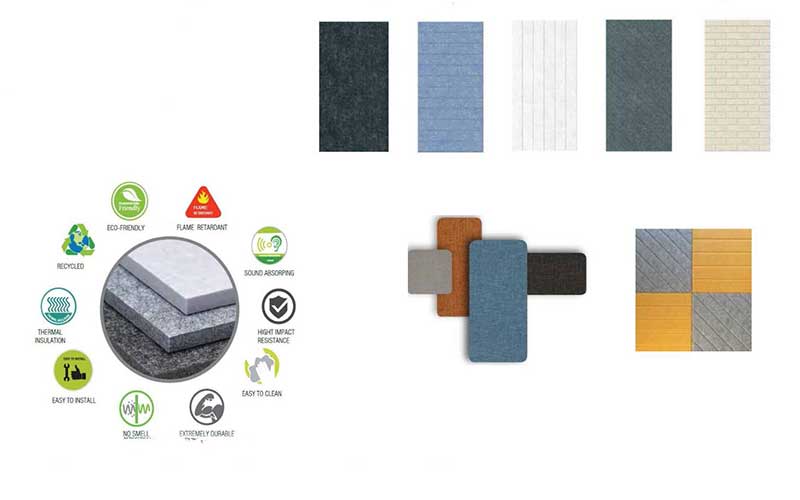 สิ่งแวดล้อมเท่านั้น แต่ยังให้บริการโซลูชั่นสำหรับความต้องการของลูกค้าในการตกแต่งที่ใช้งานได้จริงสำหรับพื้นที่ของพวกเขา ผ้าสักหลาดของเราทำจากวัสดุรีไซเคิลจึงเป็นมิตรกับสิ่งแวดล้อม อีกทั้งยังมีคุณสมบัติหน่วงการติดไฟ มีความทนทานสูง ทนต่อแรงกระแทกได้ดี ดูดซับเสียง และมีฉนวนกันความร้อนที่ดี แถมยังทำความสะอาดง่ายอีกด้วย